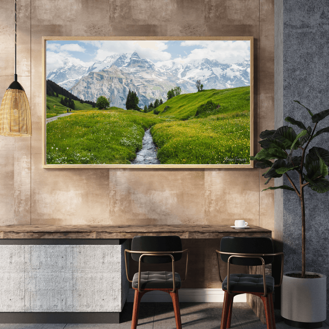 Le Dibond est un support rigide haut de gamme, composé de deux fines plaques d’aluminium avec un noyau composite. Il offre une excellente planéité, une grande durabilité dans le temps et un rendu très contemporain. Le tirage du papier prestige est directement contrecollé sur le support, sans verre ni cadre, pour un rendu épuré et prête à être accroché (système d’accroche au dos inclus)