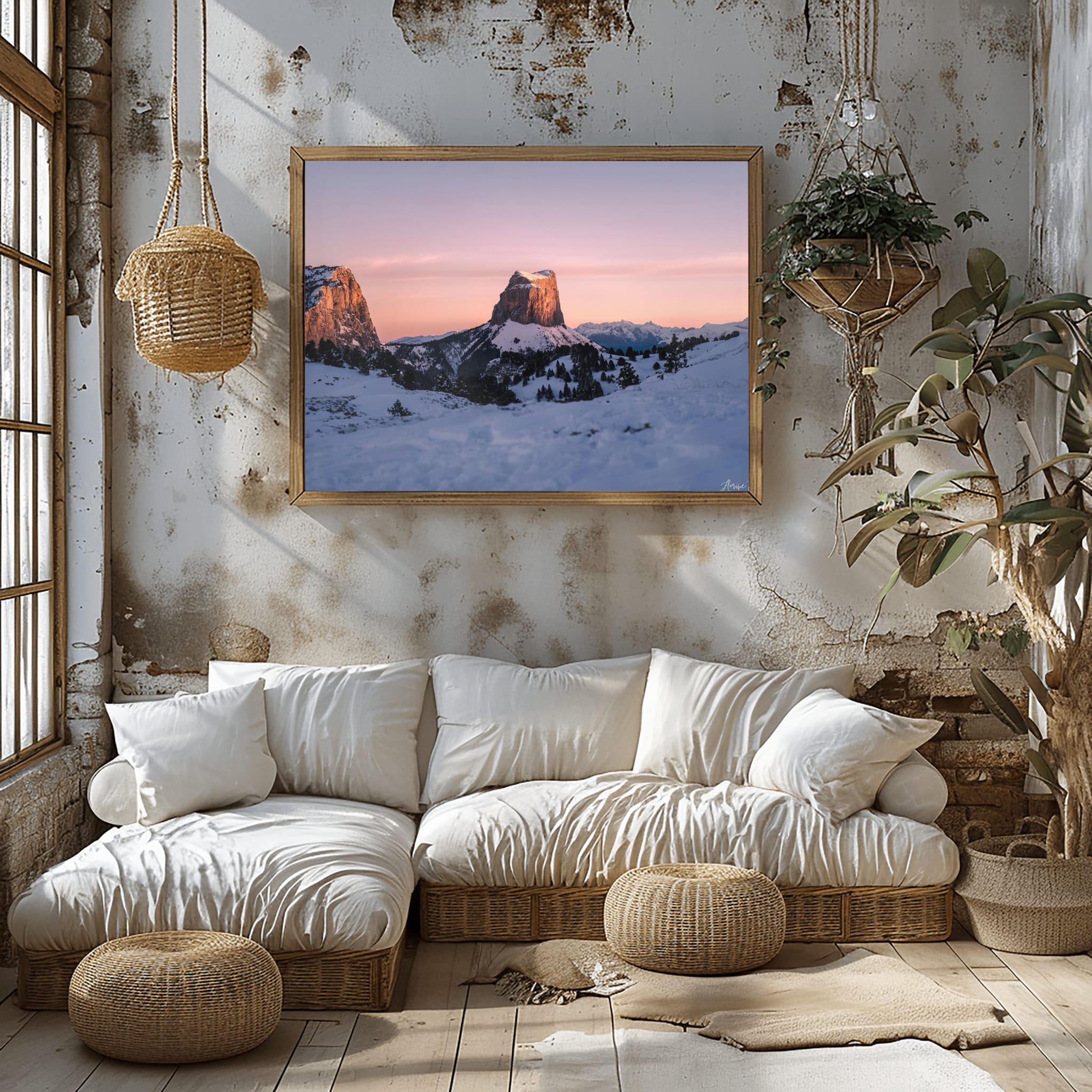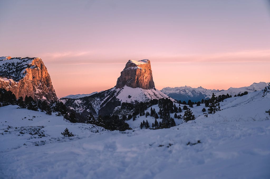 Vous commencé à me connaitre, l’hiver est ma saison préférée. Alors je ne pouvais pas passer à côté du géant du Vercors, le Mont Aiguille pour l’immortaliser sous la neige, avec un magnifique lever de soleil.