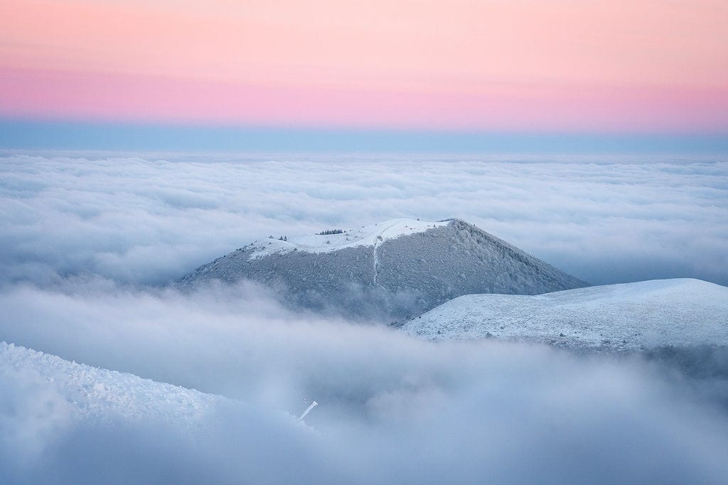 C’est esthétiquement le plus beau de la chaîne des puys, et d’autant plus sous son manteau hivernal, encerclé par les nuages.